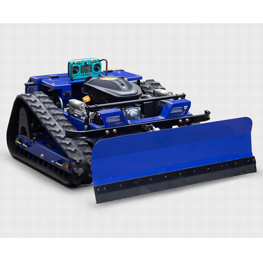 The standout feature is the tracked drivetrain. Unlike a standard zero-turn or garden tractor that risks a rollover on anything above 15 degrees, this unit’s low center of gravity and wide rubber tracks allow it to cling to 45-degree slopes with zero “crab-walking” or traction loss. The 2026 upgraded remote is a significant leap forward; the latency is nearly non-existent, and the signal remains robust even when the machine is 200 meters deep in a ravine. The steering is handled by high-torque electric motors that offer incremental precision, which is vital when navigating near retaining walls or water hazards. While the 22-inch cutting width is narrower than a typical 60-inch commercial ride-on, the speed at which it tackles difficult terrain actually saves time by eliminating the need for manual string trimming on hills. The snow plow attachment is not an afterthought—it’s made of reinforced steel and leverages the engine’s low-end grunt to clear driveways effectively, though it performs best on fresh powder rather than packed ice.