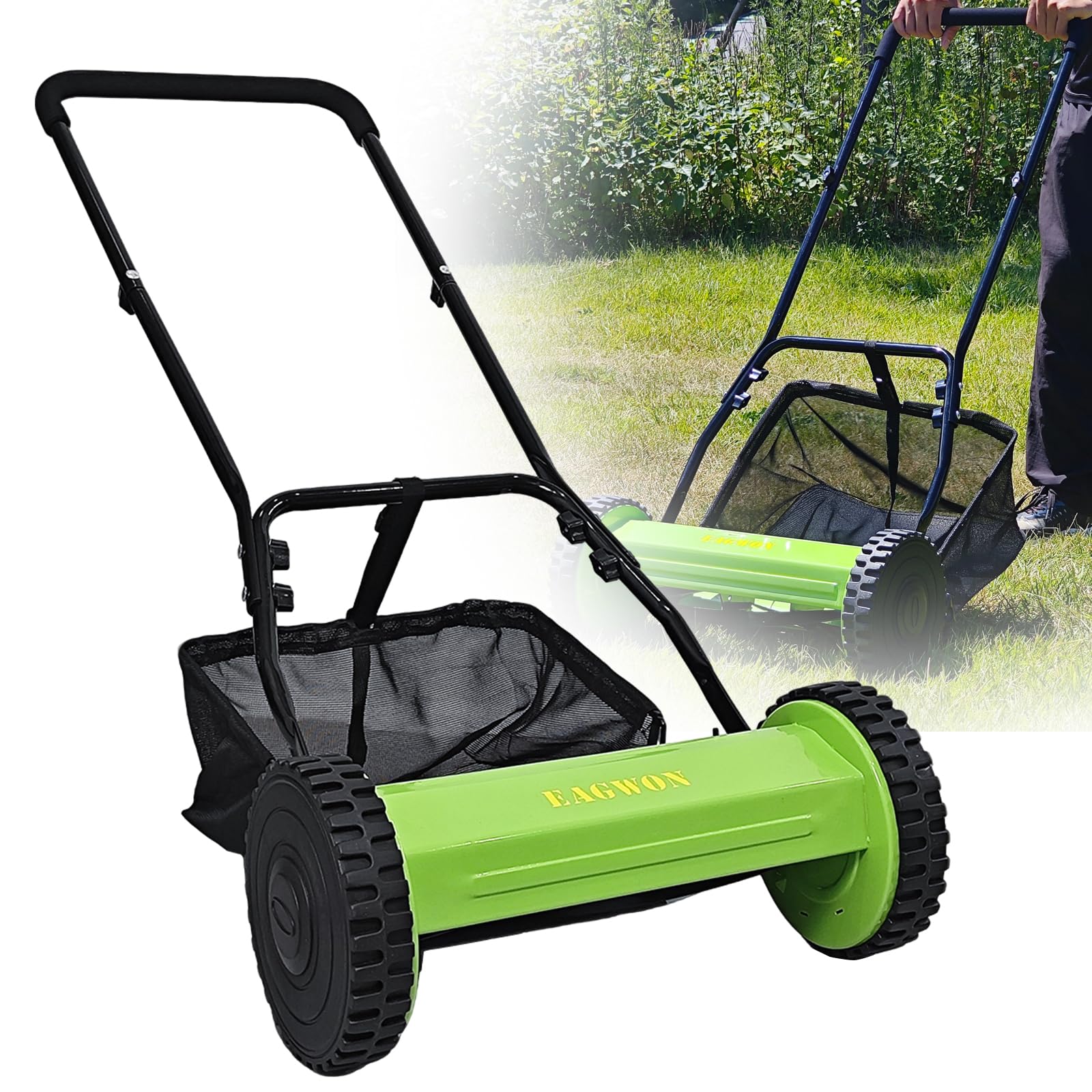 Push Lawn Mower, 16-Inch 5-Blade Walk-Behind Manual Push Reel Lawn Mower - Cordless, Adjustable Height for Effortless Yard & Garden Grass Cutting