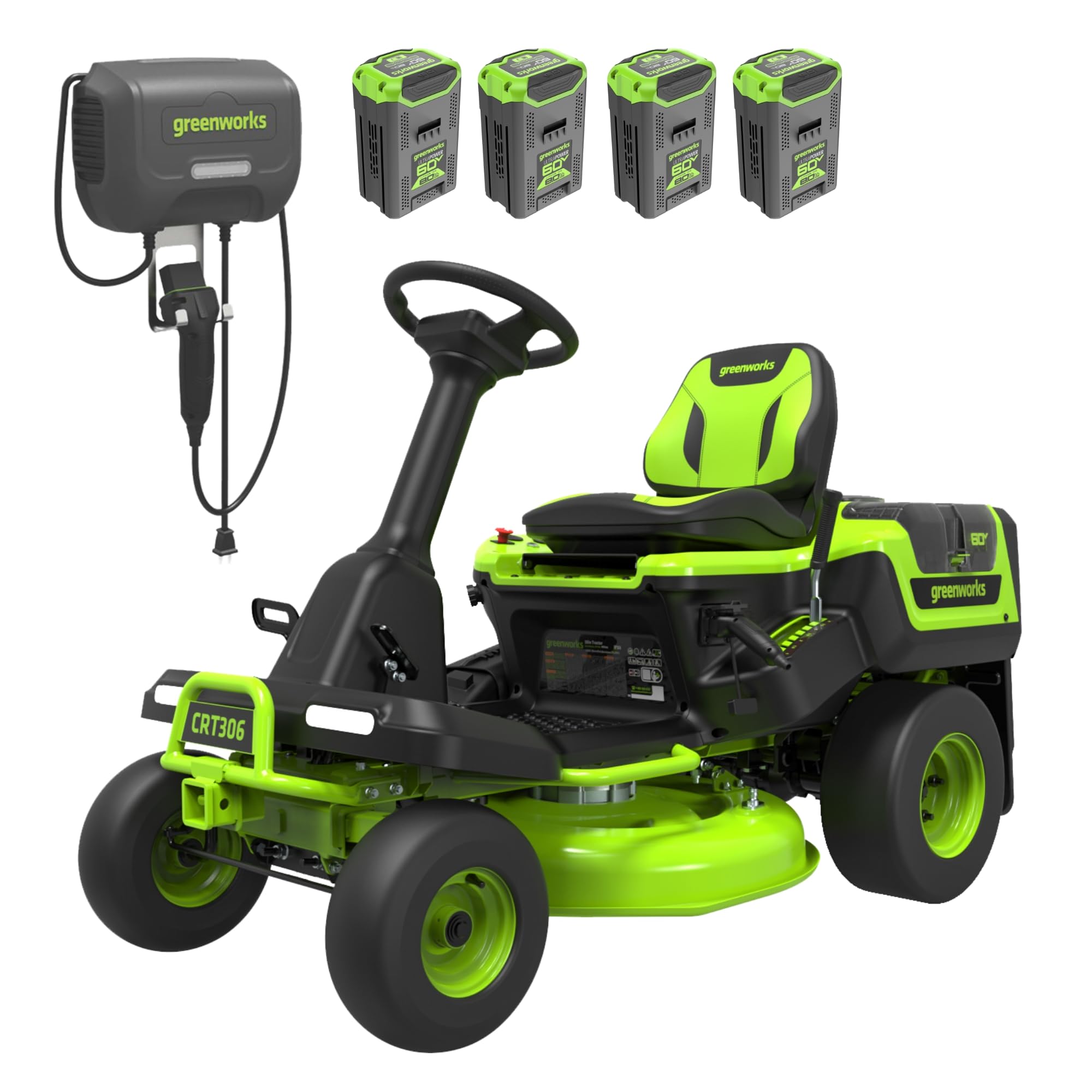 Greenworks 60V 30″ Tractor, (4) 8.0Ah + Wall Charger