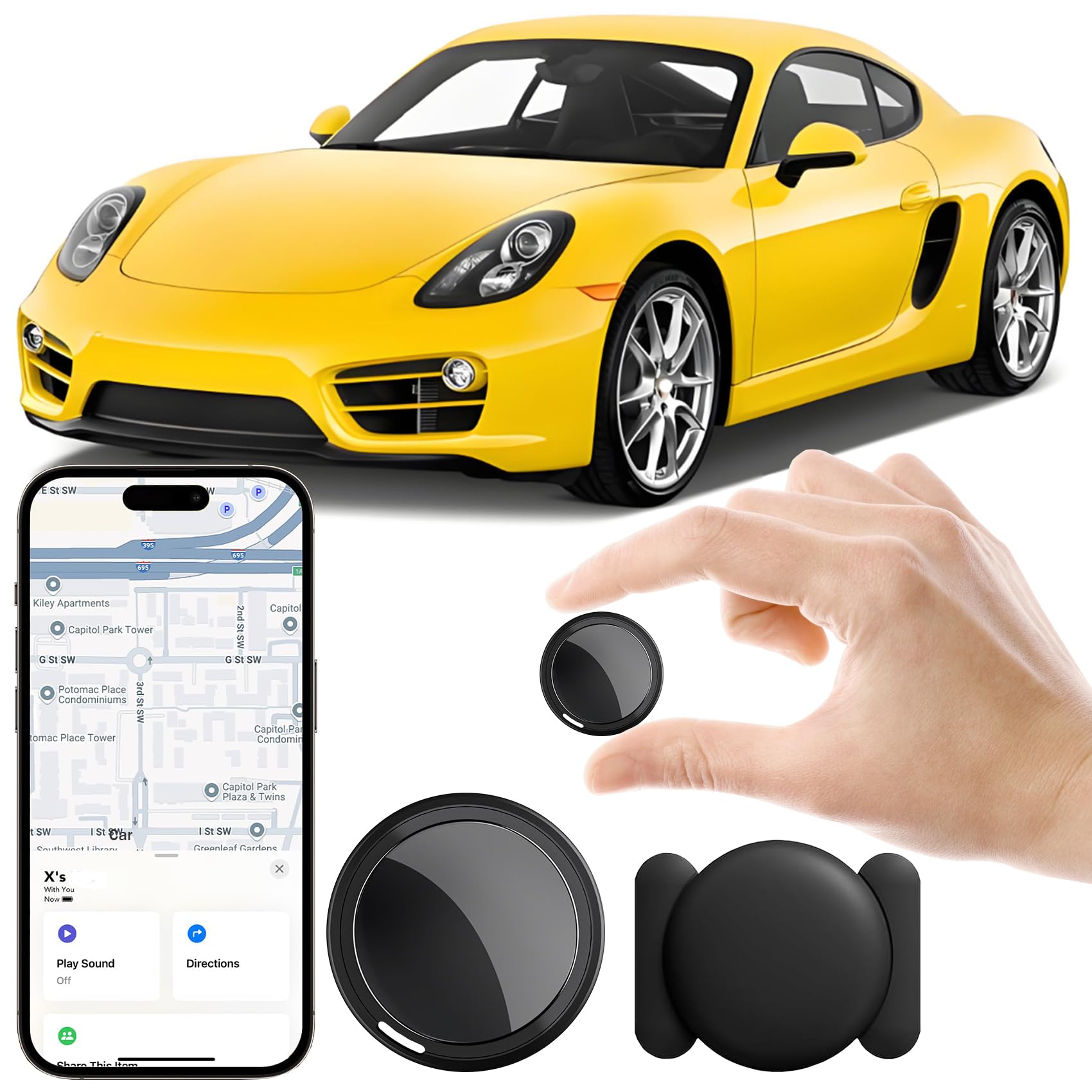 Magnetic Hidden GPS Tracker for Vehicles,Magnetic Waterproof Car Tracker, No Monthly fees, Mini Portable GPS Tracker for Bike,Trucks, Fleet, Motorcycle, Anti-Theft (iOS Only)