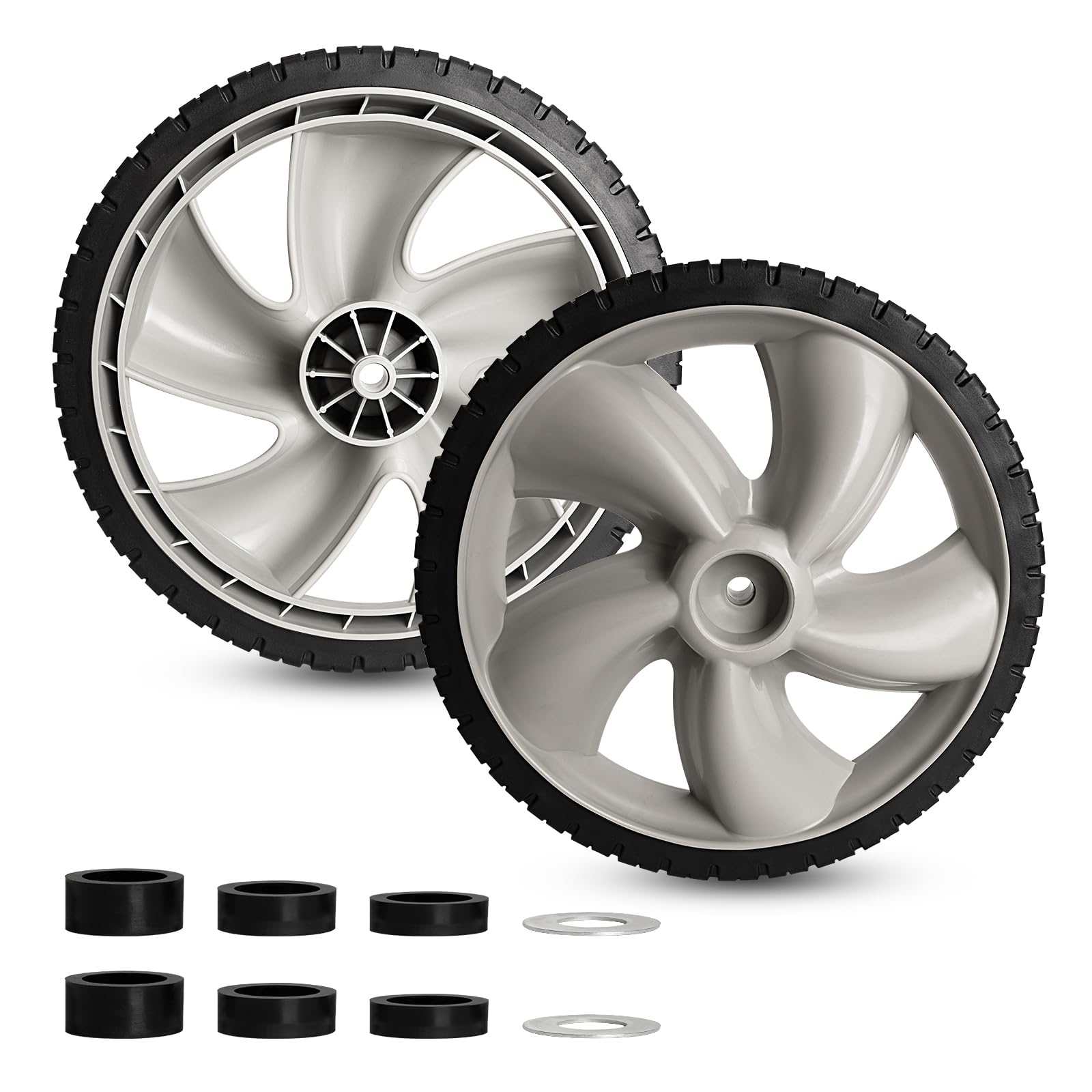 12-Inch Lawn Mower Wheels (2-pack) Fits Most Standard push Lawn Mowers, Inner and outer bearing structure - Includes Bolts, Nuts. (Also available in 6-in, 7-in, 8-in, 10-in and 14-in wheels)