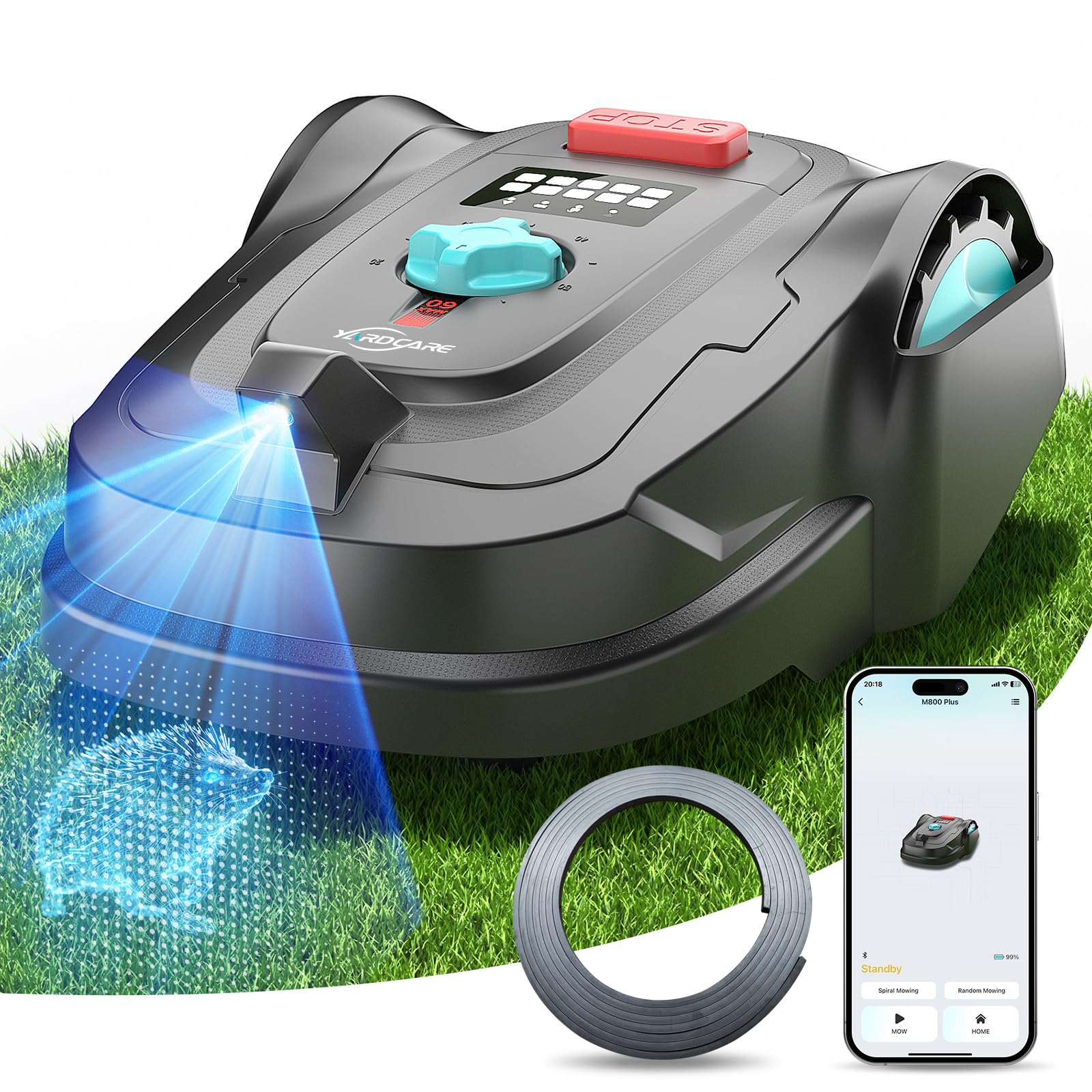 YARDCARE 2026 New M800Plus Robot Lawn Mower, GPS & 3D Vision, with 32.8 ft Magnetic Stripe, Obstacle Avoidance, Auto-Charging, APP Control, Bow-Shaped Mowing for Lawns up to 8611 sq.ft (Black)