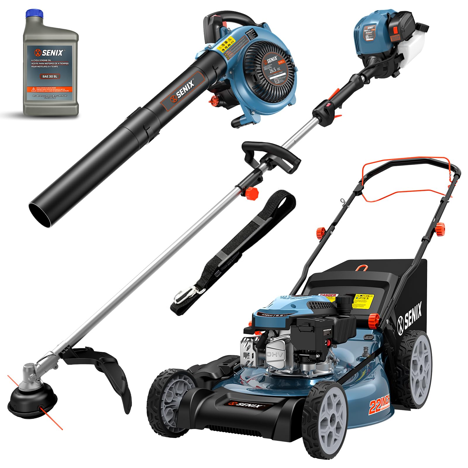 SENIX 22" Self-Propelled Gas Lawn Mower, 17-Inch 26.5 cc Gas Weed Wacker ahd 26.5cc Gas Leaf Blower Kit