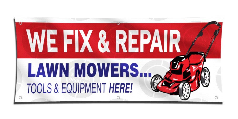 We FIX Repair Lawn Mowers Banner (2ft X 5ft) Sign Shop Display Tool Service Colorful Poster Vinyl Flag