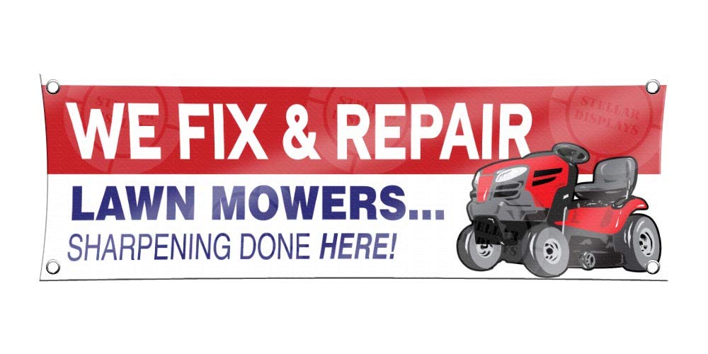 We FIX Repair Lawn Mowers Sharpening Done Here Rider Banner (1ft X 3ft) Sign Shop Display Tool Service Colorful Poster Vinyl Flag