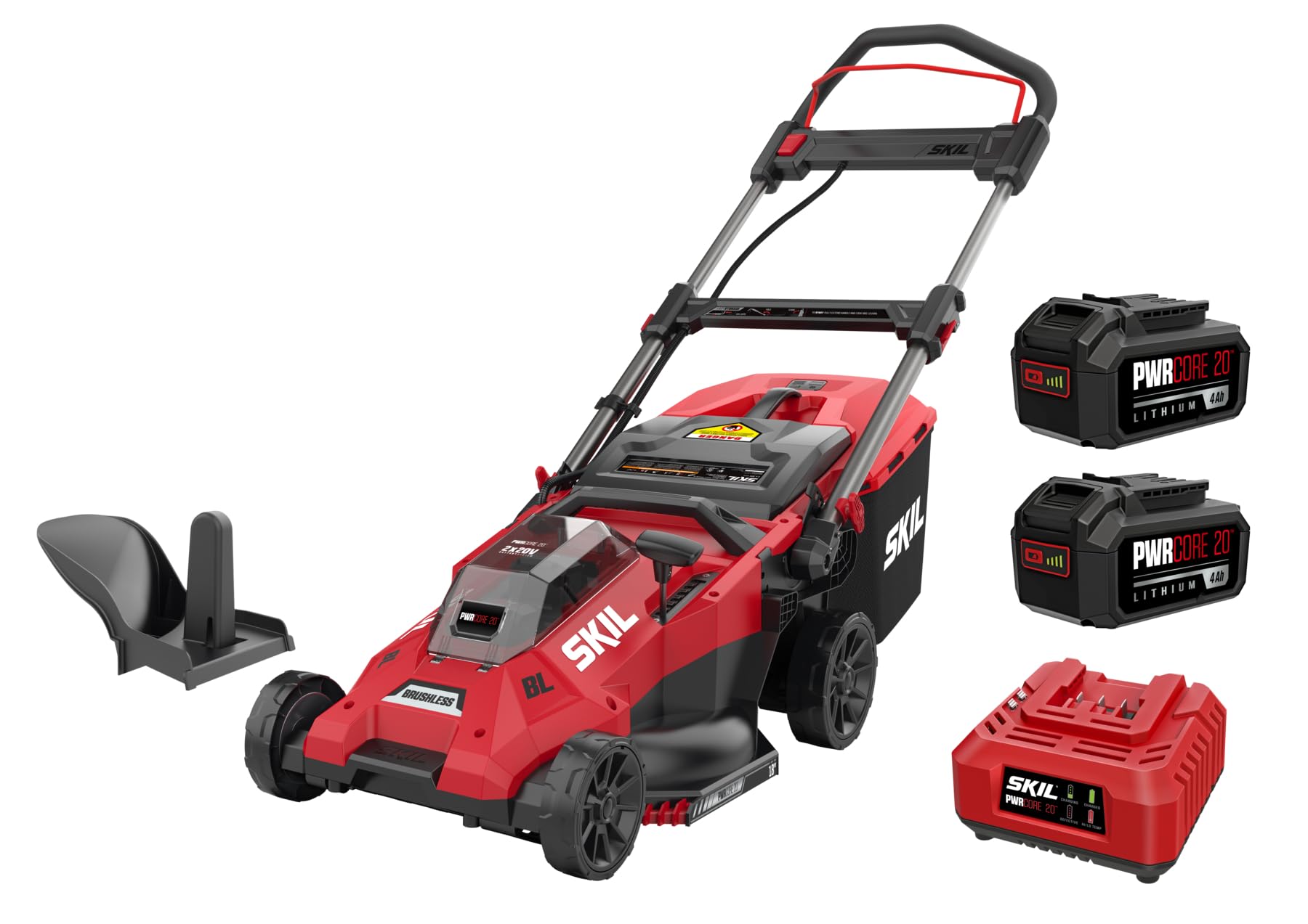 SKIL PWR CORE 20 Brushless 18″ Lawn Mower Kit Including Two 4.0 Ah Batteries and Dual Port Charger-PM4912B-20