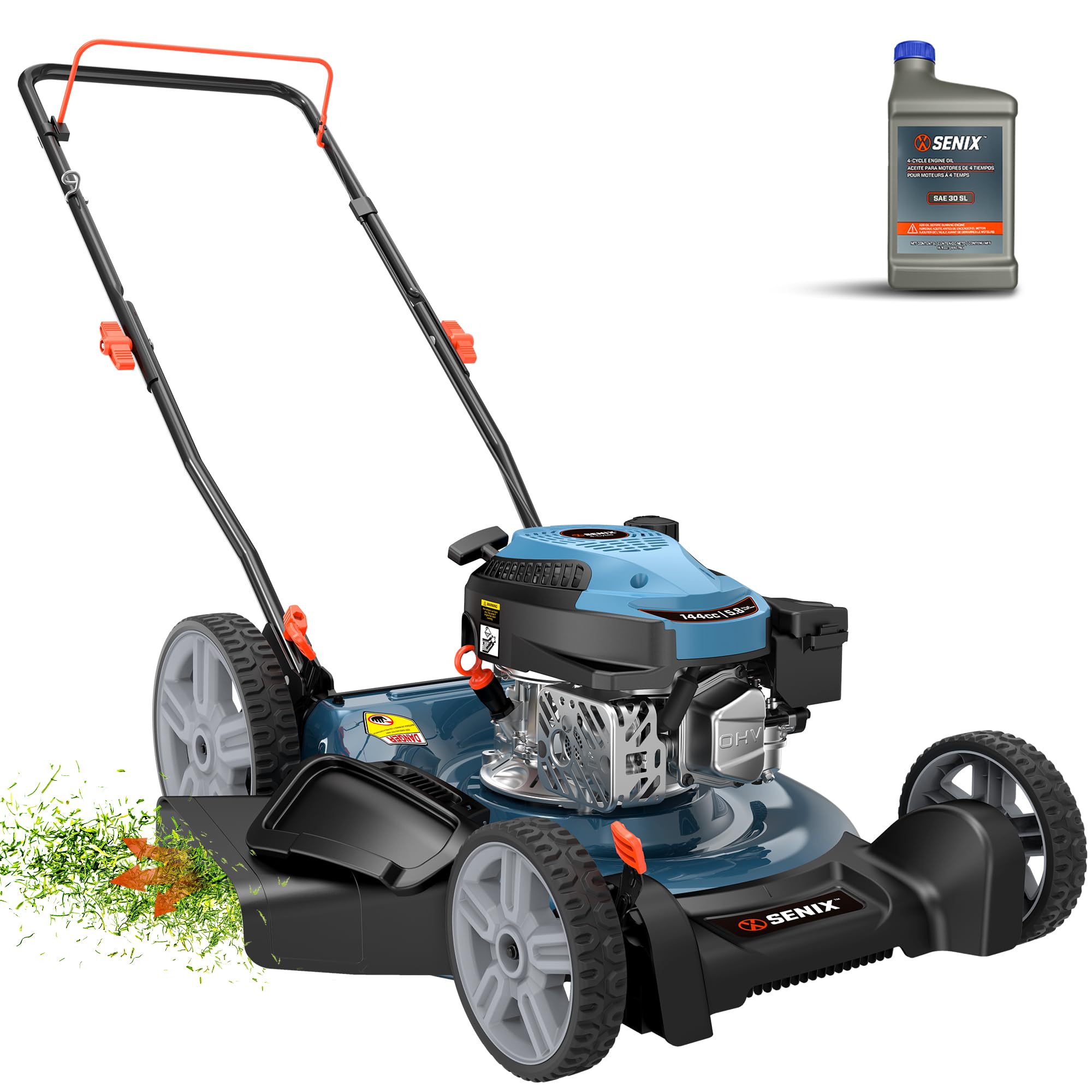 SENIX 21-Inch Gas Lawn Mower, 144CC 4-Cycle Engine Push Mower with Mulching & Side Discharge, 6-Position Cutting Height Adjustment, Residential Walk-Behind Mower for Yard & Garden