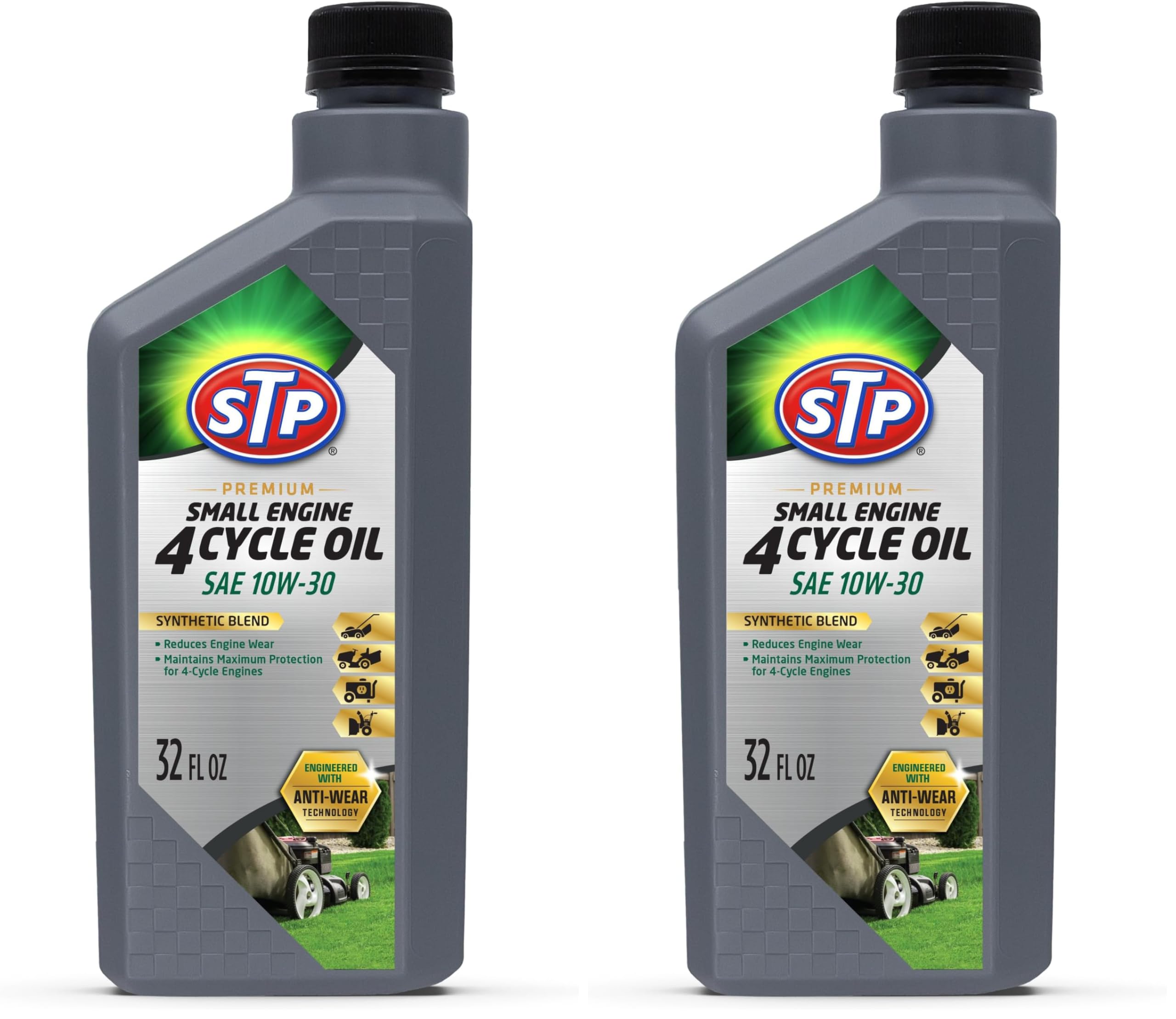 STP Premium Small Engine 4 Cycle Oil Formula, SAE10W-30 Small Engine Oil & Care Formula Reduces Wear for Lawnmower, Push Mower, Tractor, 32 Oz, STP (Pack of 2)