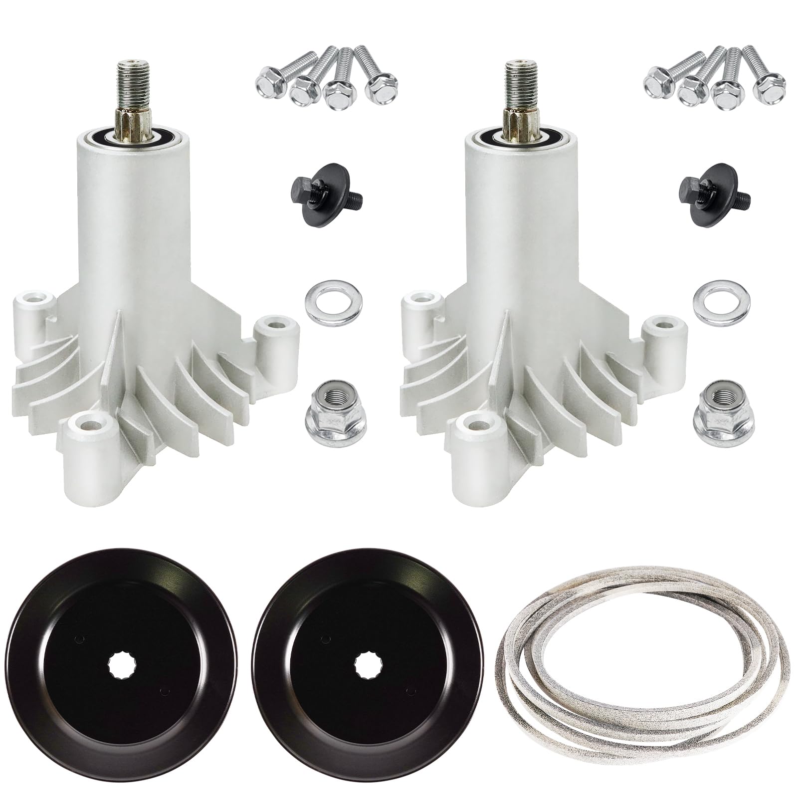After two decades of evaluating parts for craftsman riding lawn mowers, I have observed that the most common mistake is replacing a single noisy spindle while leaving a glazed belt and worn pulleys in the system. This kit solves that by ensuring all rotational components share the same wear cycle. The 130794 spindles included here feature cast aluminum housings with high-grade internal bearings that come pre-greased, though they include Zerk fittings for long-term maintenance—a critical feature for longevity in dusty conditions.