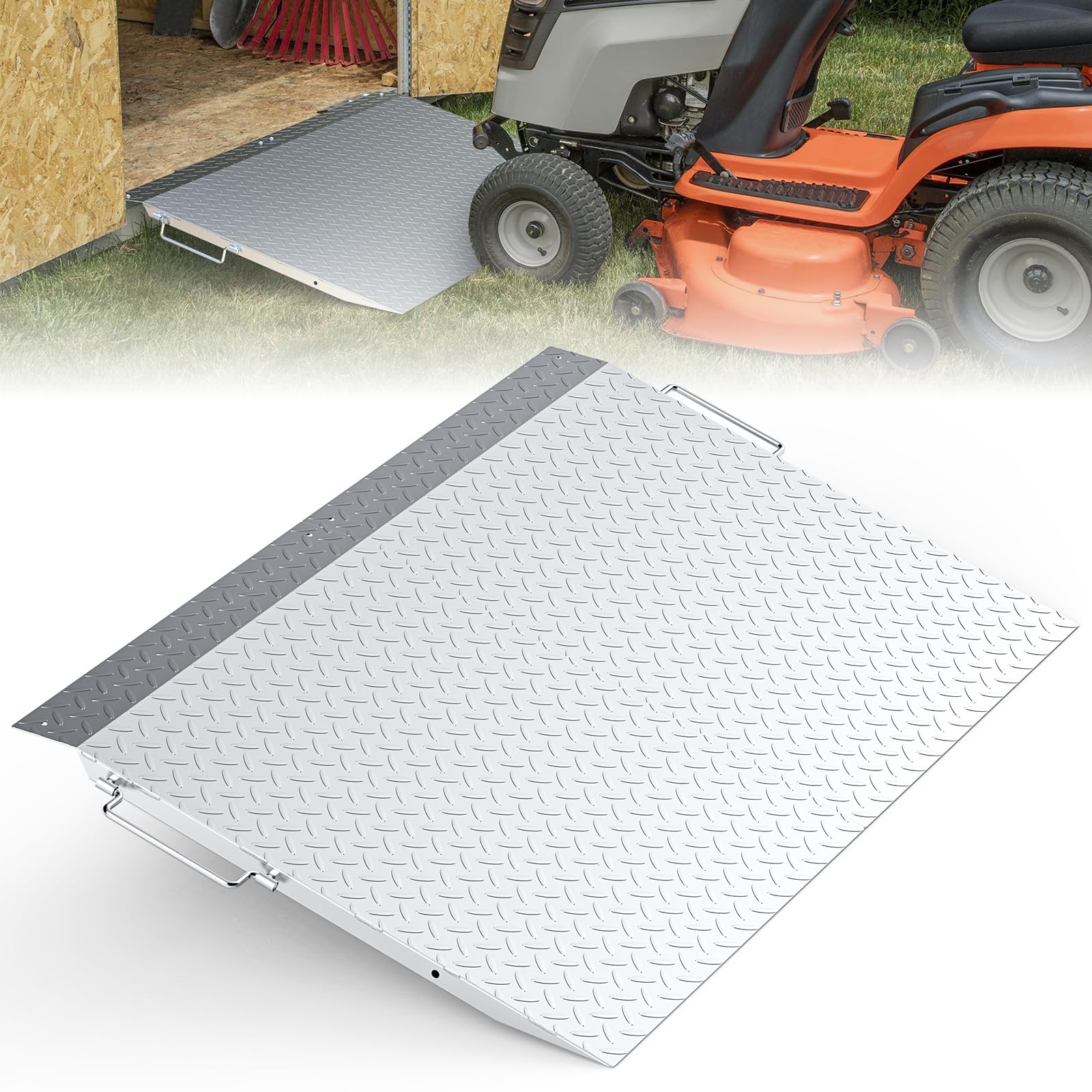 VNN 29" x 48" Shed Ramp for Riding Mower & Lawn Equipment | 1500 LB Capacity Anti-Slip Punch Plate Ramp for ATV, Motorcycles, Garages & Barns (2PC, Aluminum)