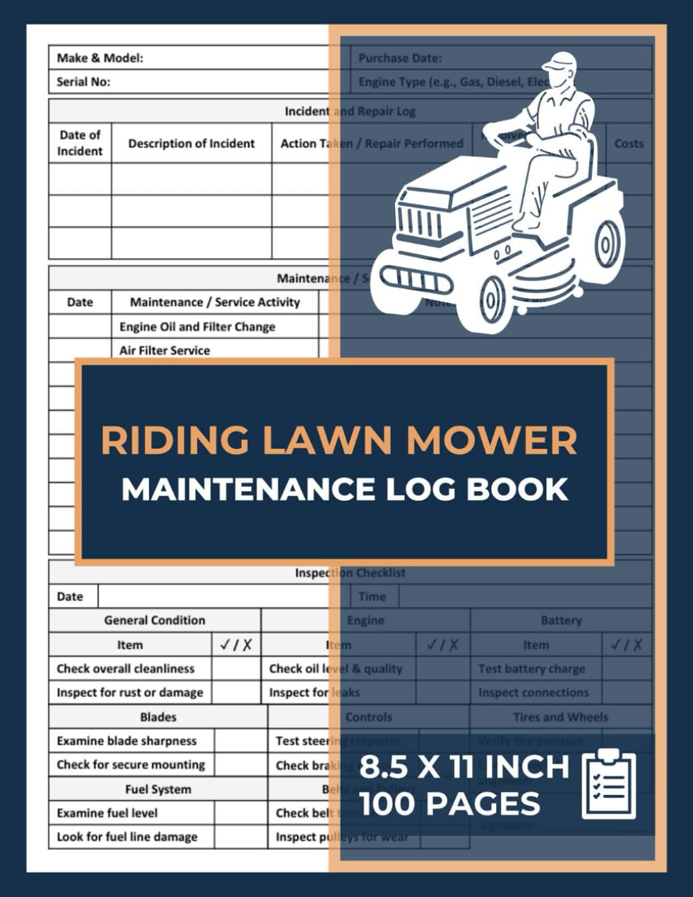 Riding Lawn Mower Maintenance Log Book: Ride On Lawn Mower Repair & Service Record with Daily Inspection Checklist | Maintenance Logbook for Riding Mowers