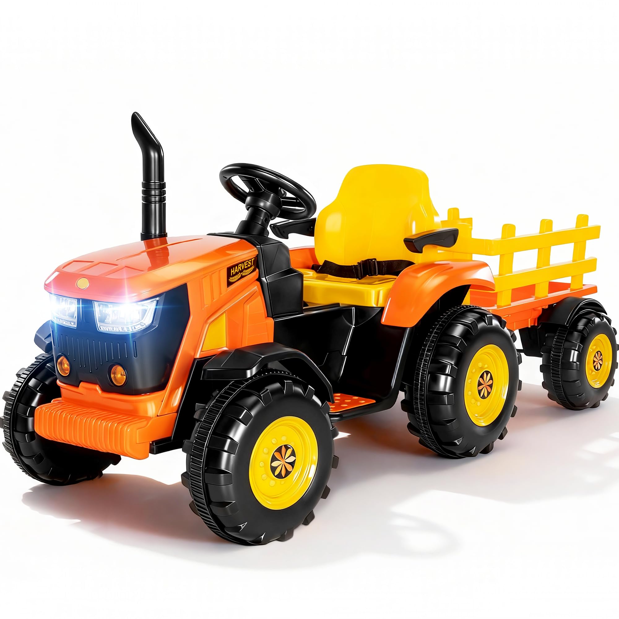 V XL Ride-On Tractor with Tiltable & Detachable Trailer, 2×80W Motors, Adjustable Handles, EVA Tires, Forward & Reverse, Safety Belt, Remote Control – Farm Harvest Edition