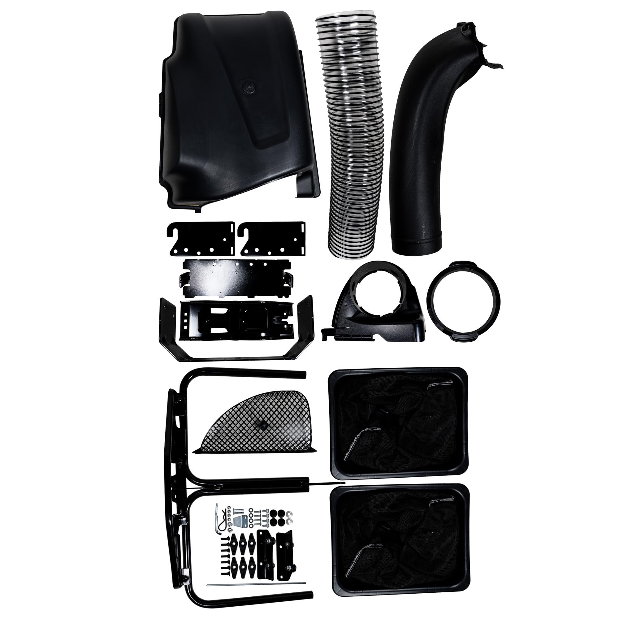 | OEM Precision Fit: Eliminates the air leaks and rattling common in universal 36-inch bagger kits. | Moisture Sensitivity: Like most 36-inch systems, the lower blade tip speed can cause chute clogs in damp grass. |