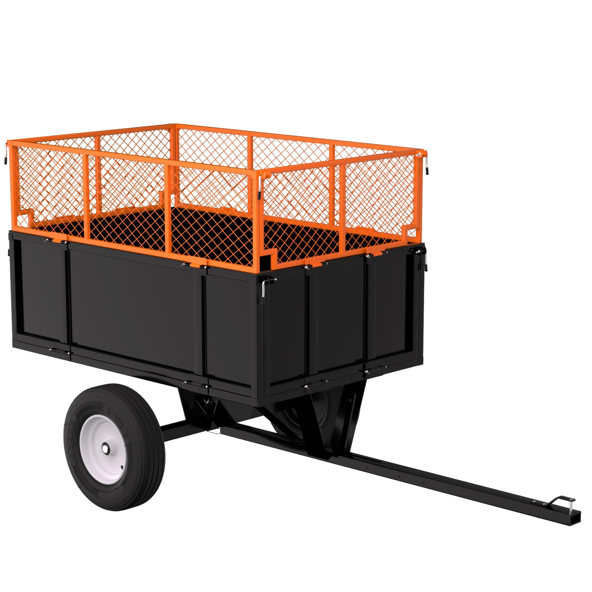VEVOR Heavy Duty ATV Trailer Steel Dump Cart, 750 lbs 15 Cubic Feet, Garden Utility Trailer Yard Trailers with Removable Sides for Riding Lawn Mower Tractor