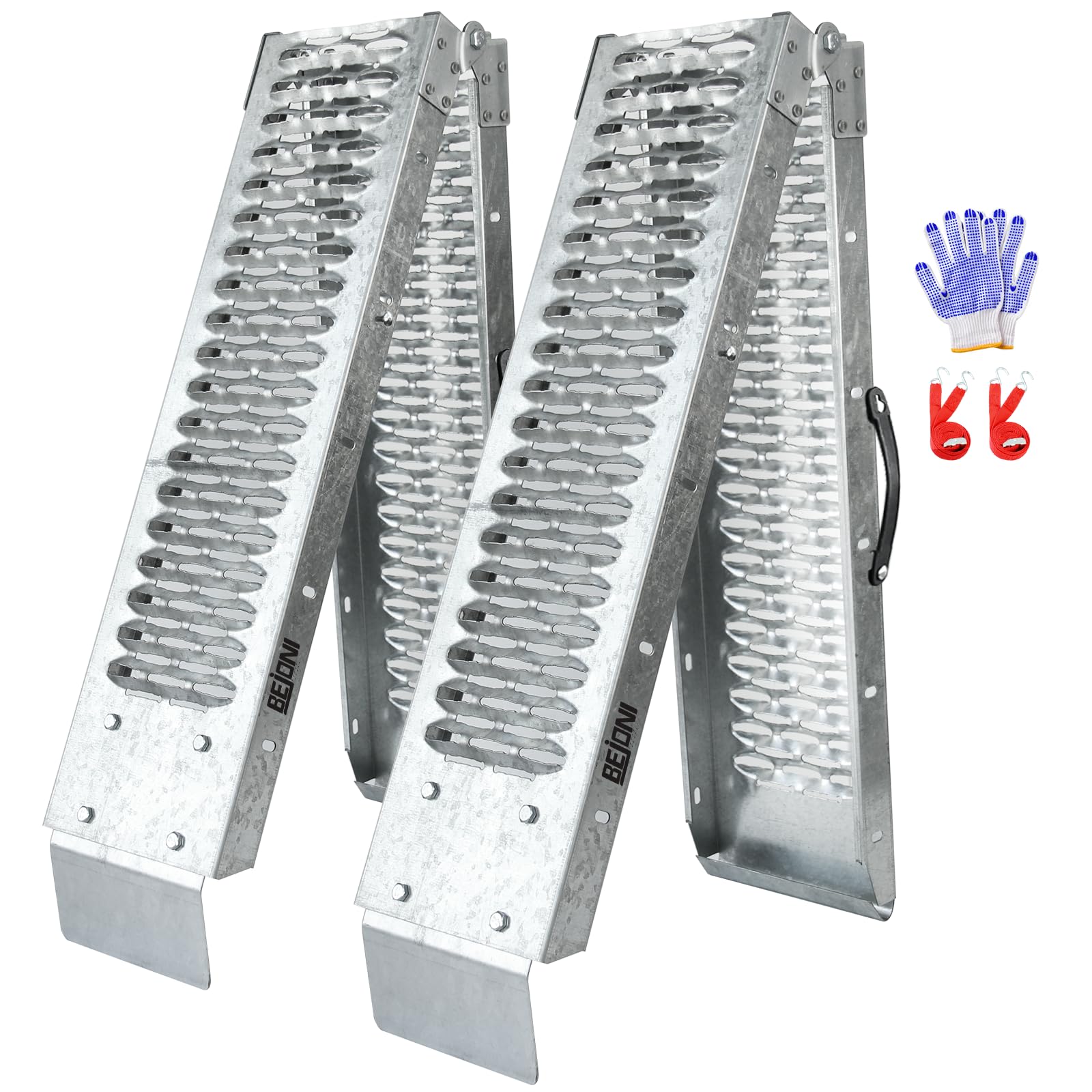 The BEJONI 67″ Steel Folding Ramps offer a rugged, budget-conscious solution for homeowners who prioritize structural rigidity over lightweight portability. While the 960-pound capacity is sufficient for most residential lawn tractors, the shorter 67-inch length creates a steep incline that is best suited for low-clearance trailers rather than high-profile 4×4 pickups. It is a dependable workhorse for those who need a set of “set it and forget it” ramps for weekend yard work.