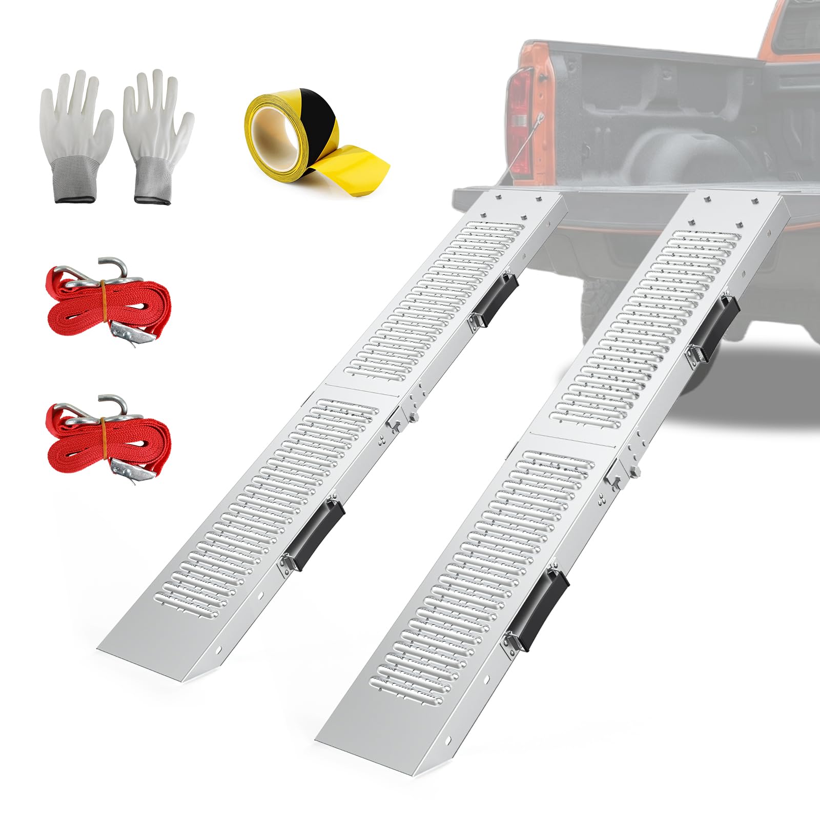 7.5' Folding Arched Aluminum Loading Truck Ramps (2 pc Set) for ATVs, UTVs, Motorcycles, Dirt Bikes, 4 Wheelers, Lawnmowers, 90" Long, 1,500 lbs Capacity