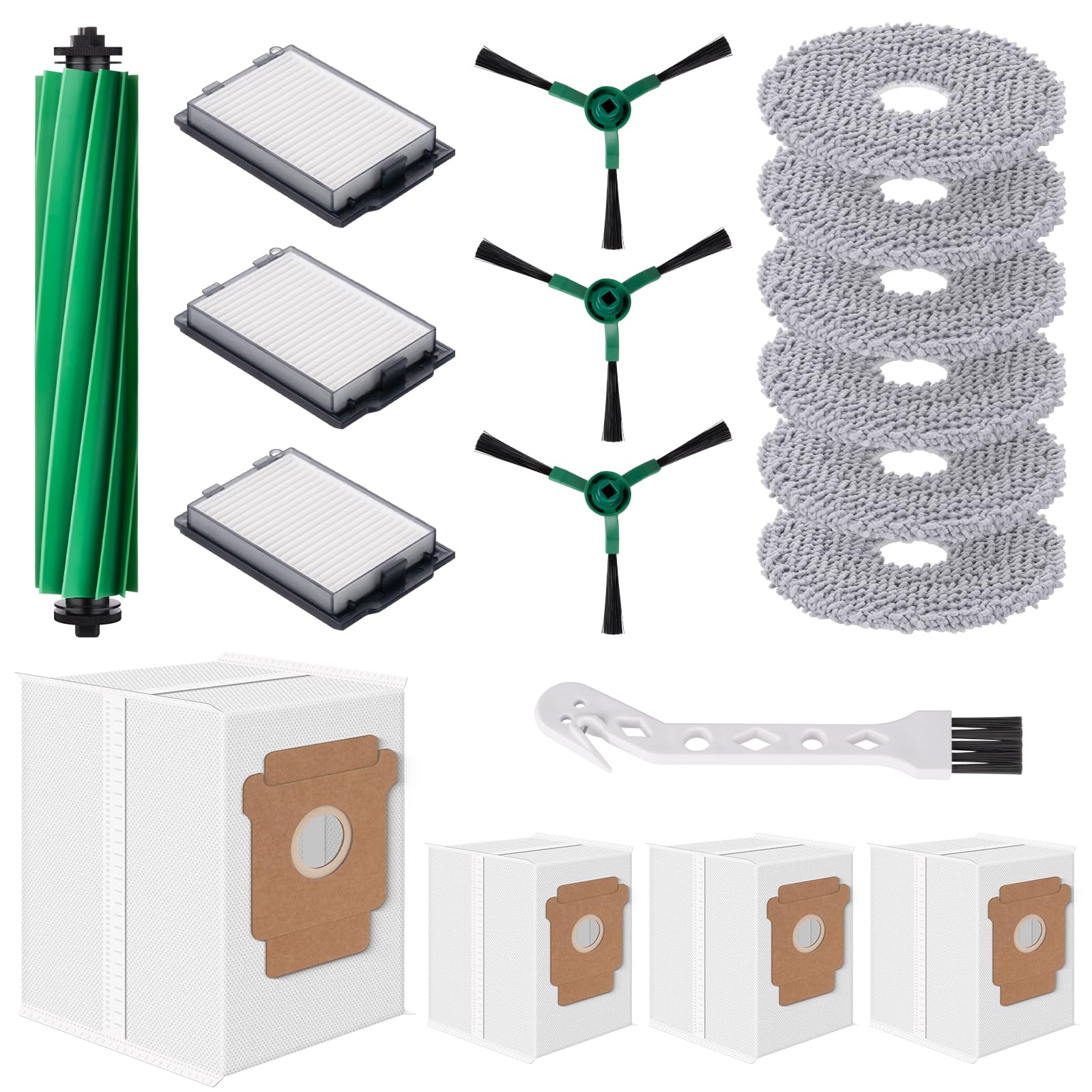 Pcs Replacement Parts for iRobot Roomba Plus 405/505/507 Combo Robot Vacuum Cleaner: 1 Main Brush, 4 Side Brushes, 4 HEPA Filters, 5 Dust Bags, 6 Mop Pads, 1 Cleaning Brush